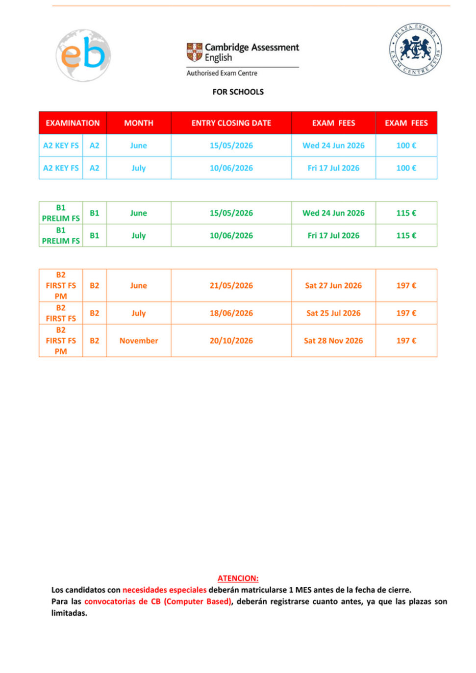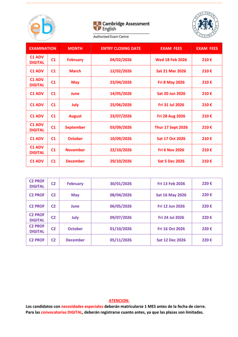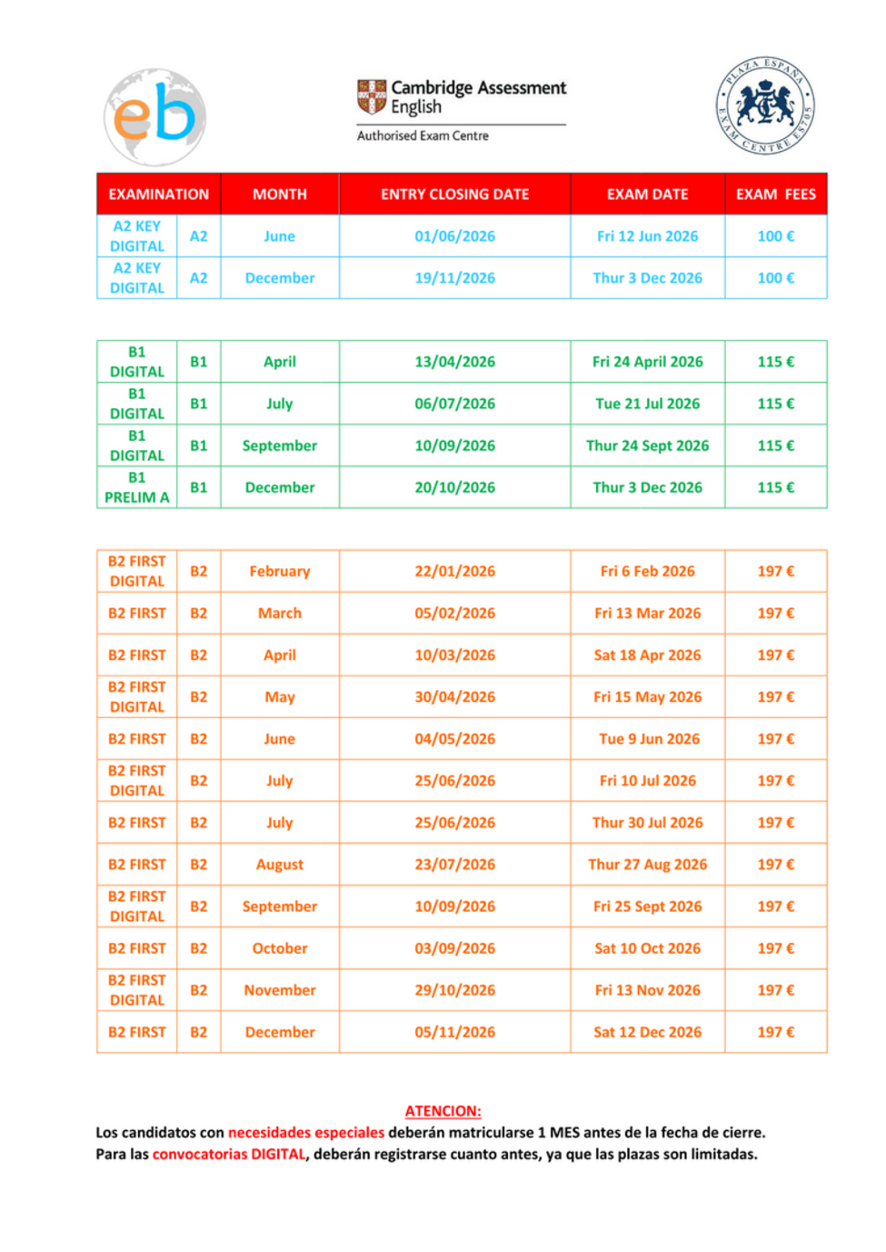 Consulta aquí las próximas convocatorias de exámen oficial Cambridge